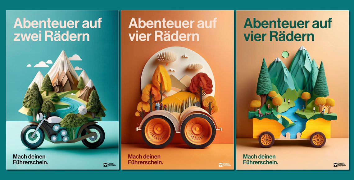 Starke Designs, die Lust auf den Führerschein machen. Egal, ob im Schaufenster oder hinter dem Tresen: Die Dekoposter setzen Ihre Fahrschule in Szene und holen interessierte Fahrschüler*innen in Ihre Fahrschule.
